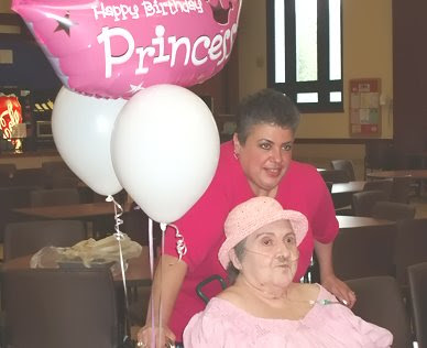 My mother never thought that she would live past the age of 49 which was the age her mother was when she passed away. My grandmother Lena had non smoking related emphysema; she was born with very weak lungs. My mother was only 11 years old when she watched her mother struggle for her last breath, a tragic experience for anyone much less an eleven year old child. My mother started smoking at the age of 16 and by the age of 30 she smoked between 2 and 3 packs a day. During these years the fear of dying at 49 had subsided somewhat, at least until the time she started to feel poorly and was diagnosed with emphysema, she was 45 at the time. It was at that moment her past fear returned and she was certain that fate had stepped in and that she was down to 4 remaining years. Her fear was so great that it infected me with the same feeling of impending doom. The next few years her health remained stable, her birthdays came and went without incident as we nervously awaited the infamous birthday number 49?..it was almost as if birthday number 48 was a cliffhanger like the ones on TV. You?re nervously waiting to see what will happen next but you have to wait until the next season to find out. It was a very long year and each day in September seemed never ending. September 29th came, birthday number 49 we celebrated in our usual family way. My mother went to bed that evening and awoke to a sunny day on the 30th exhaling the fear that had shadowed her life for so long. It is now 21 years later and we just celebrated her 70th birthday. In those 21 years she has battled emphysema, breast cancer, lung cancer, an enlarged heart, spinal arthritis and a few other ailments here and there. Through all that her mind is relatively sharp, her spirits good and her ability to laugh and enjoy life very much in tact. We had a picnic lunch for her in the cafeteria of the nursing home; we had grilled white and red hot dogs, bratwurst, celery fritters, assorted salads and a chocolate cake. It truly was a day to celebrate, my mother had such a good time??..Happy Birthday Mom.