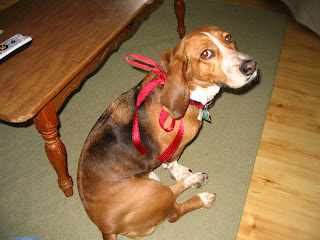 But I found out that I have an ally in the Camp Wars. (The DH and DS LOVE camping....) My basset/beagle, Darlington, is just as much of a princess. (And yes, I'm the masochist who put the bow on her at Christmas. I think she wanted to bite my leg off for it.) Her idea of camping is barking at anyone who goes past the campsite. She'd prefer to park her doggy self on the couch in the TT and sleep.